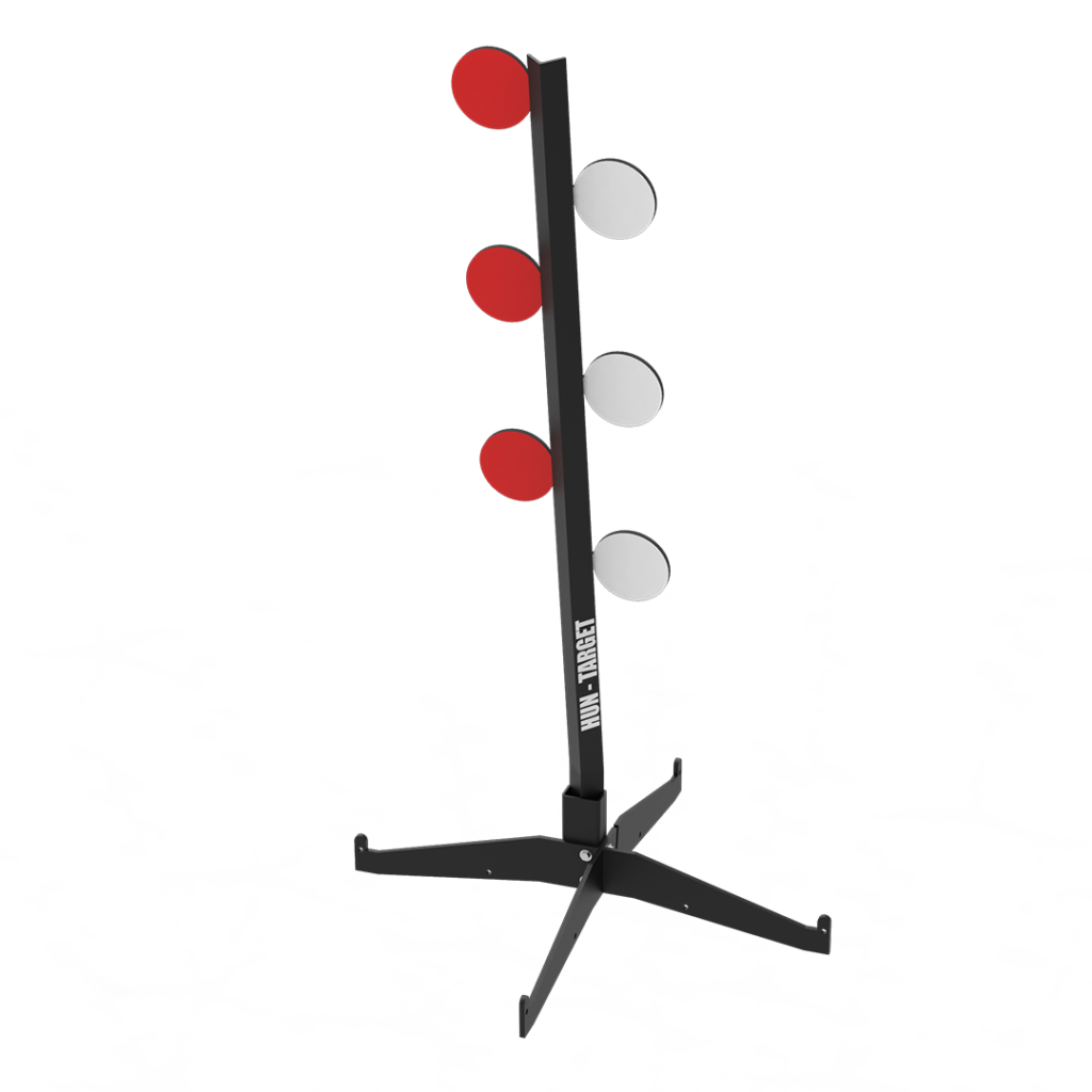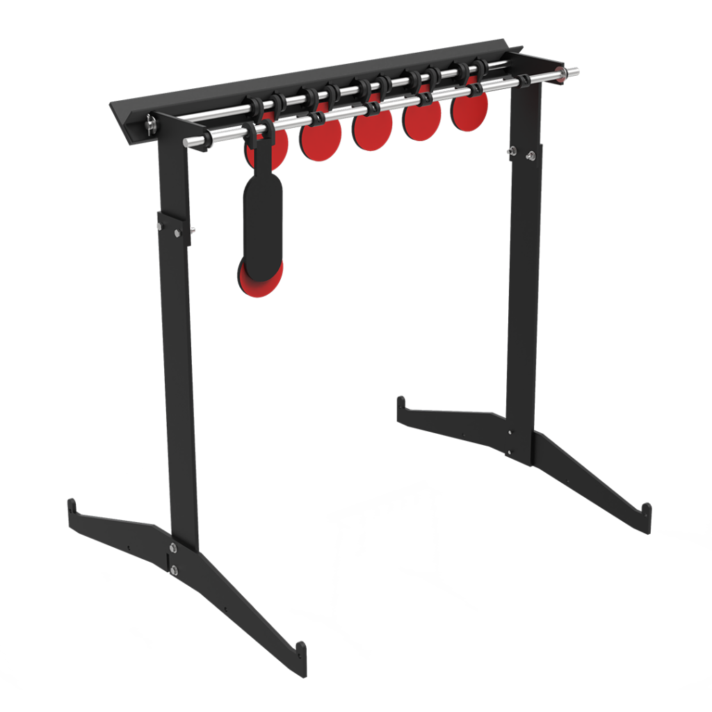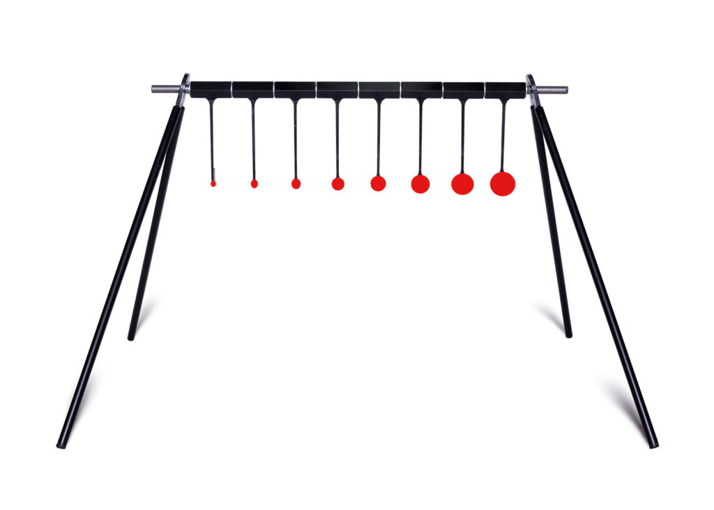 Zestaw ośmiu gongów strzeleckich na stojaku, daje możliwość stopniowania poziomu trudności